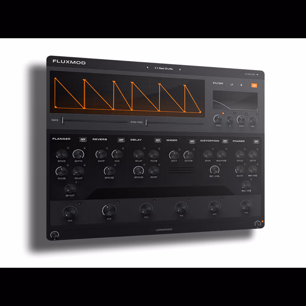 FluxMod is a powerful modulation plugin designed for creative sound design. Featuring tempo-synced LFOs, dynamic filtering, and a versatile multi-effects engine, FluxMod lets you craft evolving, expressive audio textures with ease. Jumpstart your creativity with 20 expertly designed presets, each showcasing unique LFO-based effects. Every preset is fully customisable, giving you the flexibility to shape your sound exactly how you want it.